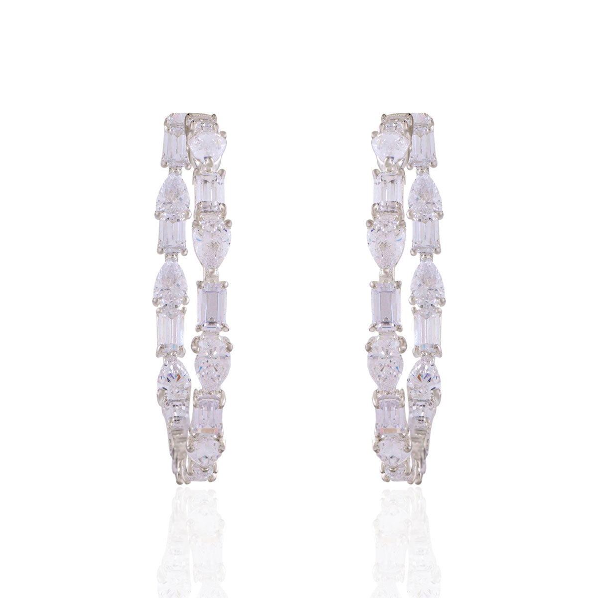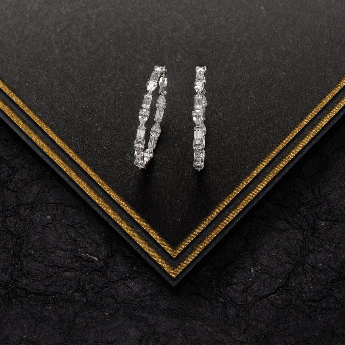 A seamless blend of emerald and pear-cut diamonds, these hoops bring together sharp elegance and soft brilliance. Designed for effortless versatility, they’re the perfect balance of bold and timeless—made to shine with you, every day and everywhere.