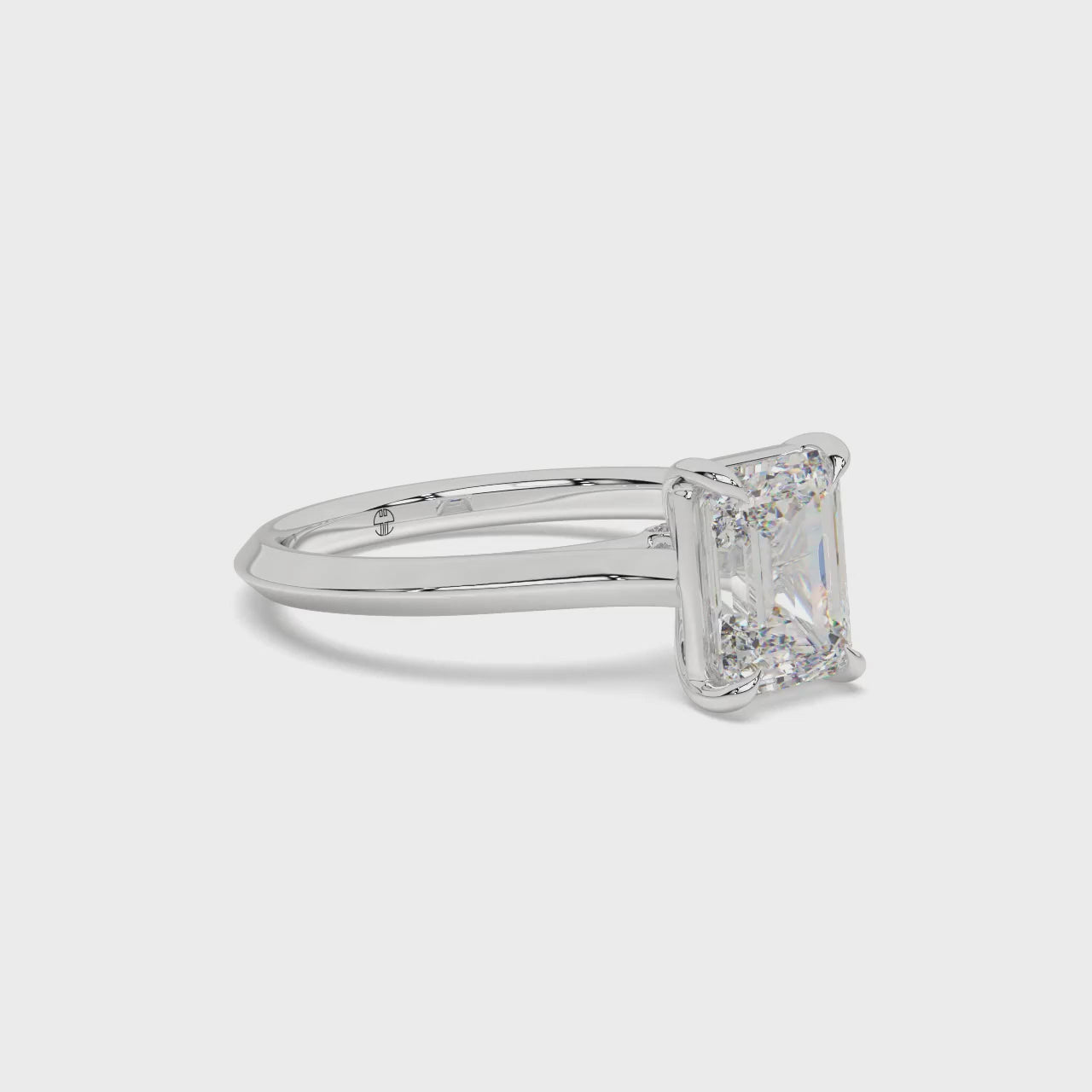 A timeless symbol of love and commitment, this 1.75 ct emerald-cut solitaire is set in a sleek band that lets its clean lines and radiant facets take center stage. Minimal yet striking, it’s the perfect promise of forever.