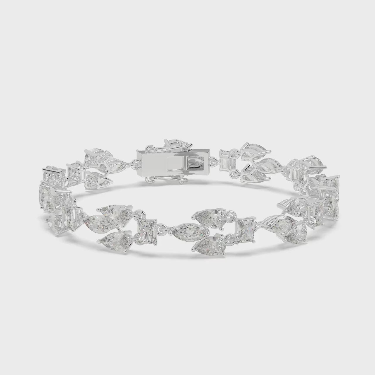 Like petals entwined in a perpetual dance, this bracelet captures the essence of nature in full bloom. Marquise, pear, and emerald-cut diamonds intertwine in a flowing rhythm — each stone echoing the grace of leaves and the brilliance of blossoms. Designed to move with you, it celebrates growth, beauty, and the quiet strength that endures through every season.