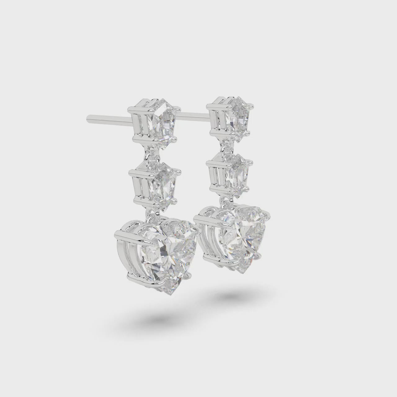 Romantic and striking, these earrings feature dazzling 1.8 ct heart-shaped diamonds suspended gracefully from custom shield-cut diamonds. A modern silhouette with timeless sparkle, they’re designed to make every moment unforgettable