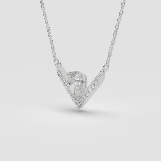 At the heart of this pendant, a 0.9 ct pear-shaped lab-grown diamond crowns a pavé-set V silhouette — a symbol of victory, strength, and moving forward. Bold yet refined, it celebrates life’s milestones with brilliance.