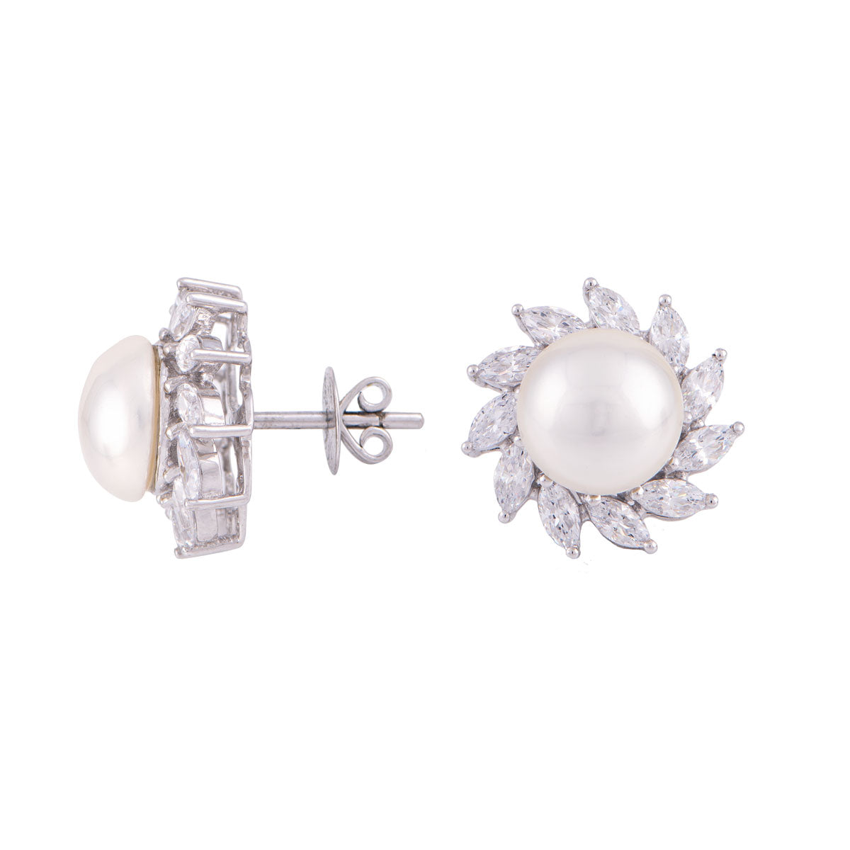 Classic yet striking, our Pearl Bloom Studs feature luminous pearls encircled by a halo of marquise-cut diamonds, artfully arranged like delicate petals. Radiating grace and timeless elegance, these earrings bring together the softness of pearls with the brilliance of diamonds — perfect for elevating both everyday looks and evening ensembles.