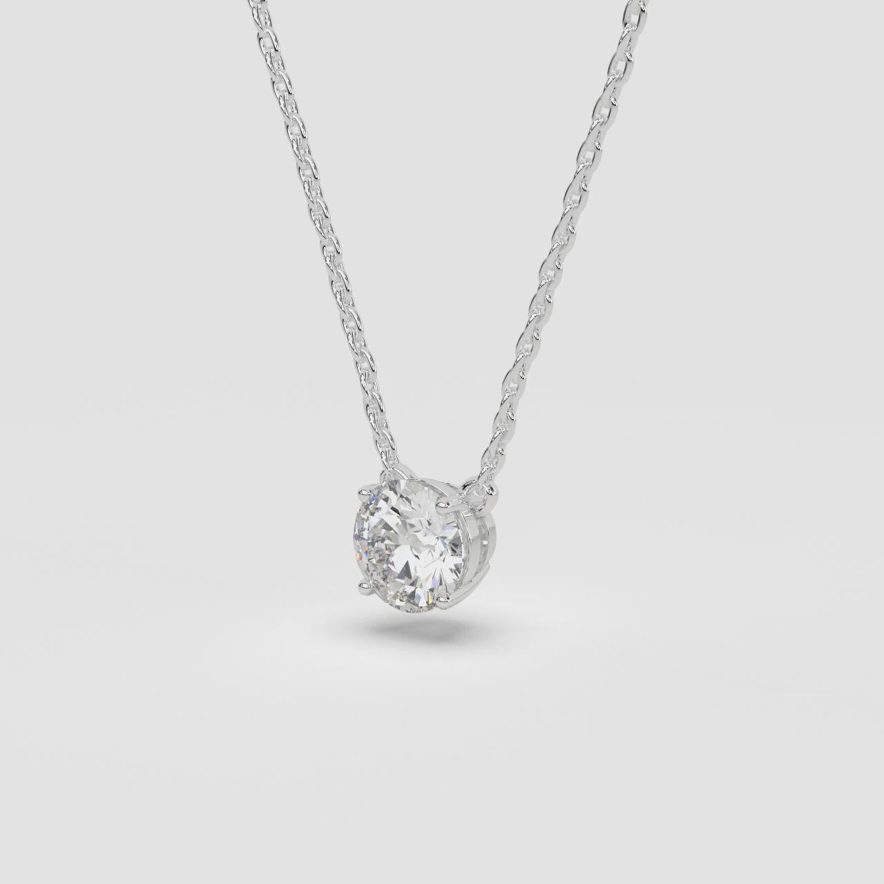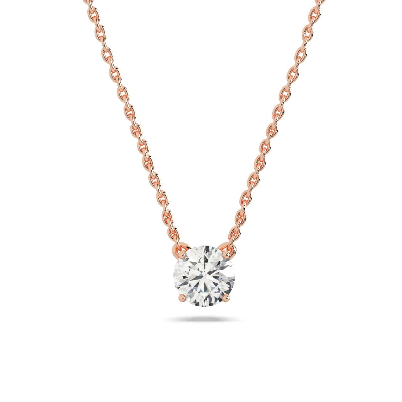 This pendant features an 0.85 ct round lab-grown diamond in a classic four-prong setting, suspended from a fine chain. Timeless and versatile, it’s an effortless piece that elevates both everyday looks and special moments.