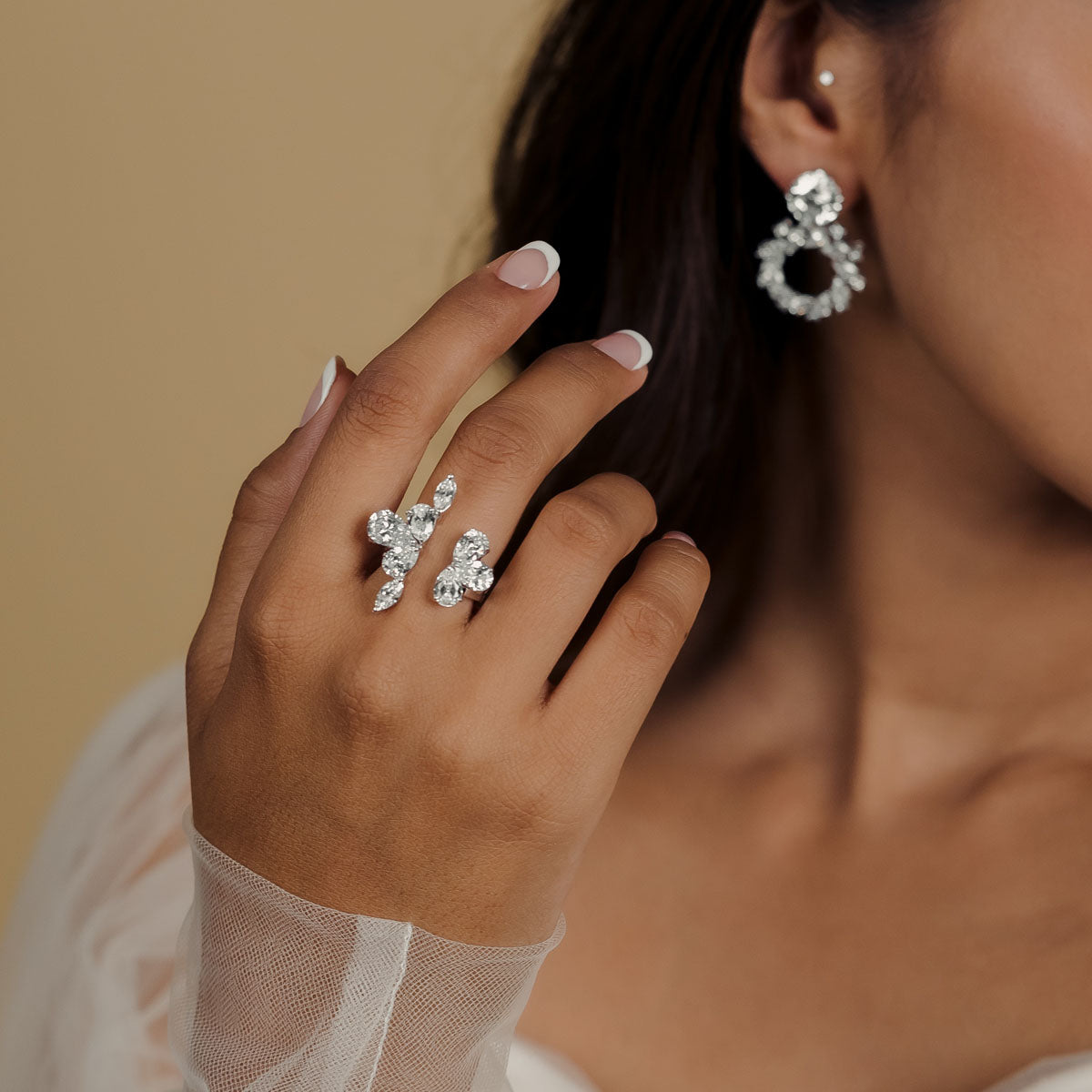 Diamonds arranged like a constellation, radiating brilliance in every direction. A sculptural play of light that feels cosmic, modern, and unforgettable.