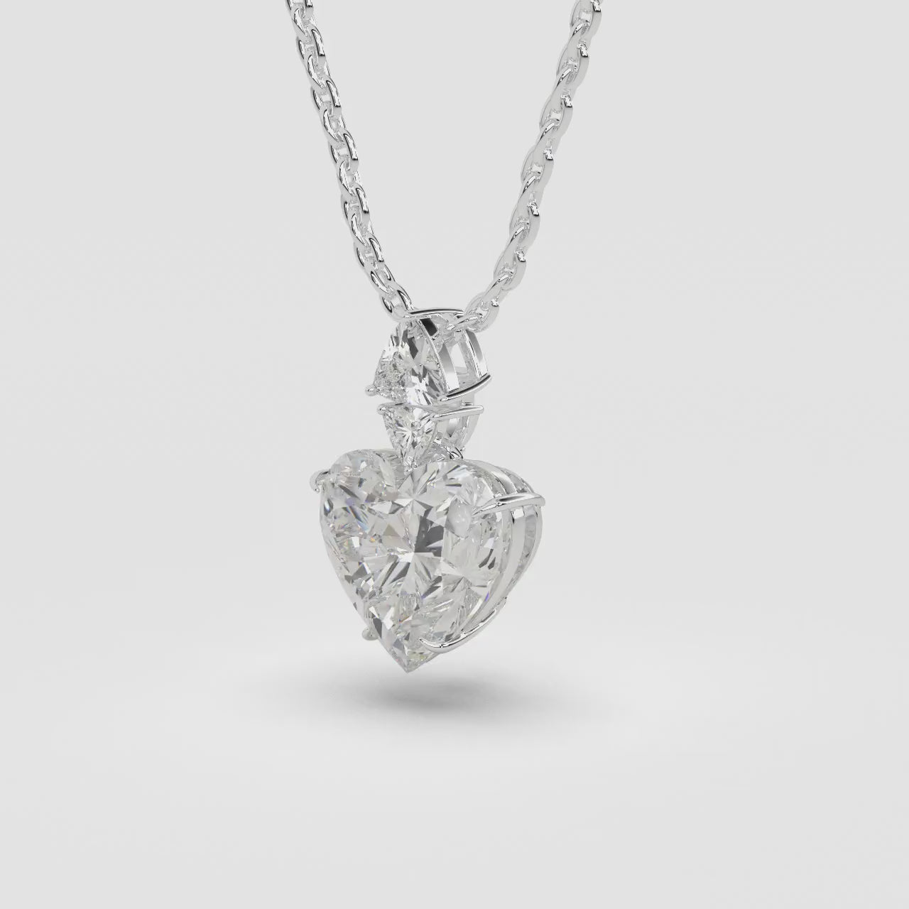 This pendant features a 1.5 ct heart-shaped lab-grown diamond crowned with two graduating trillion cuts. A symbol of love elevated by strength and balance, it’s a radiant design that captures both romance and refinement.