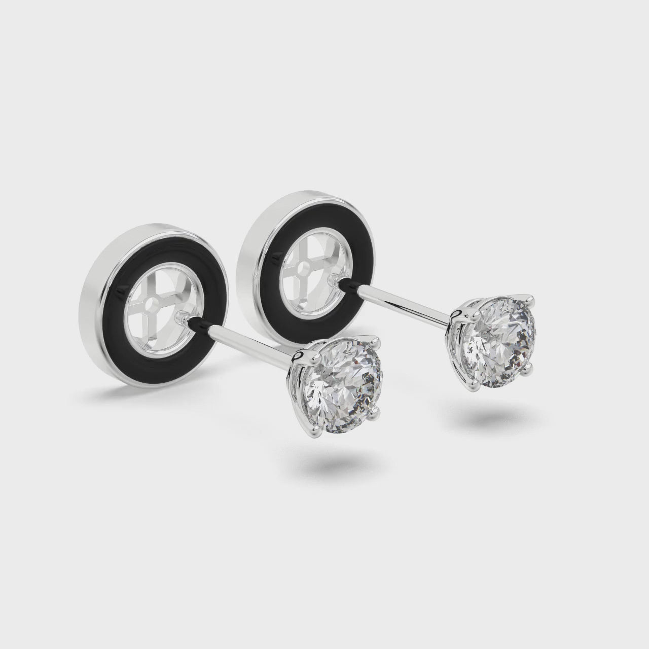 Two-Way Solitaire Studs with Black Enamel Jacket
